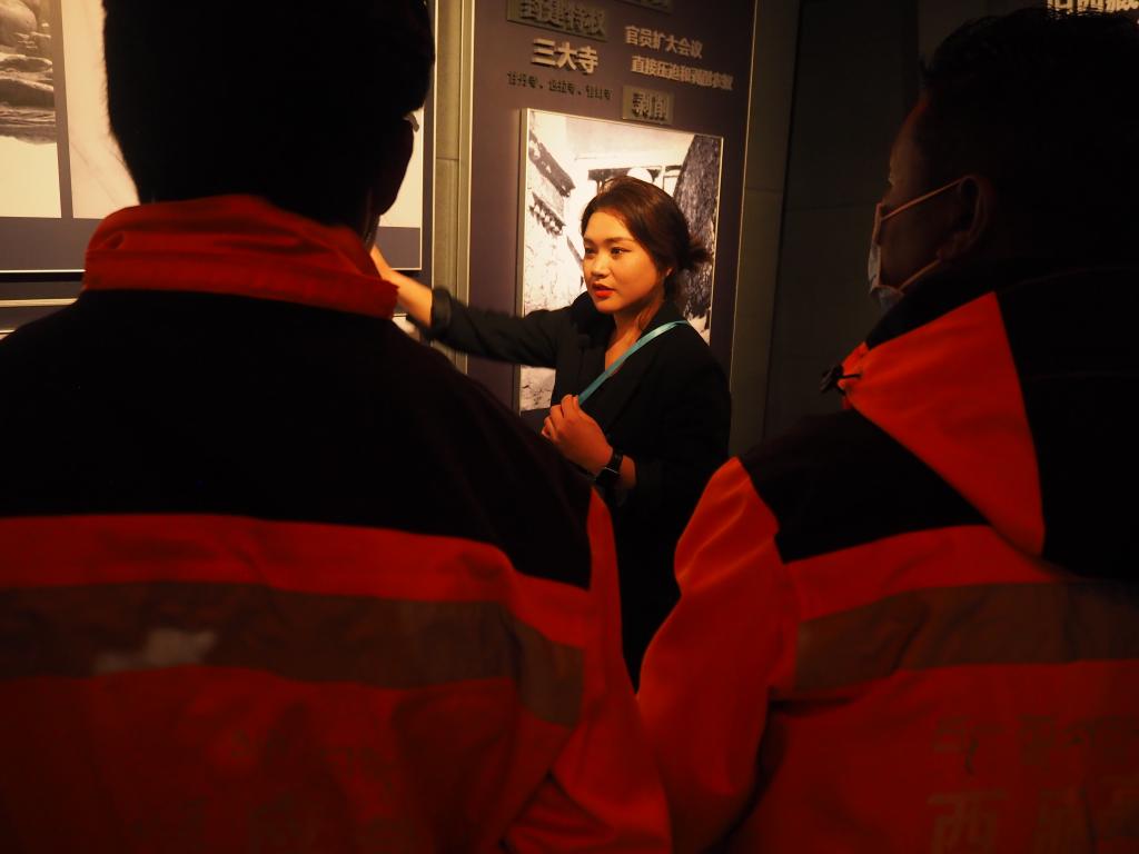 普次仁正在給參觀的學(xué)生進行解說(2022年3月28日攝)。(受訪者供圖)