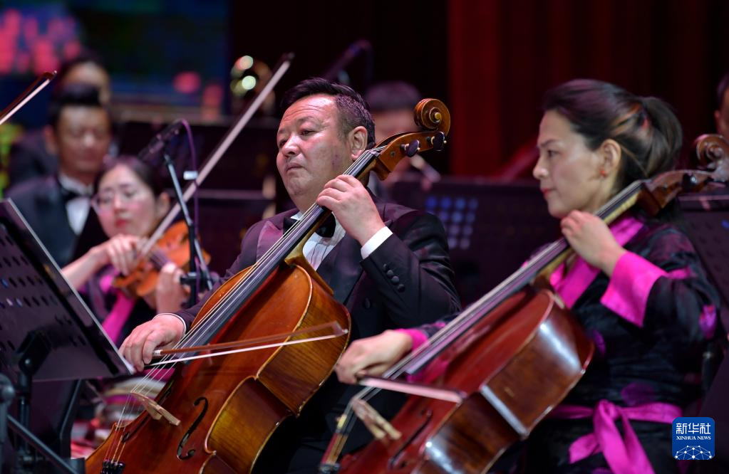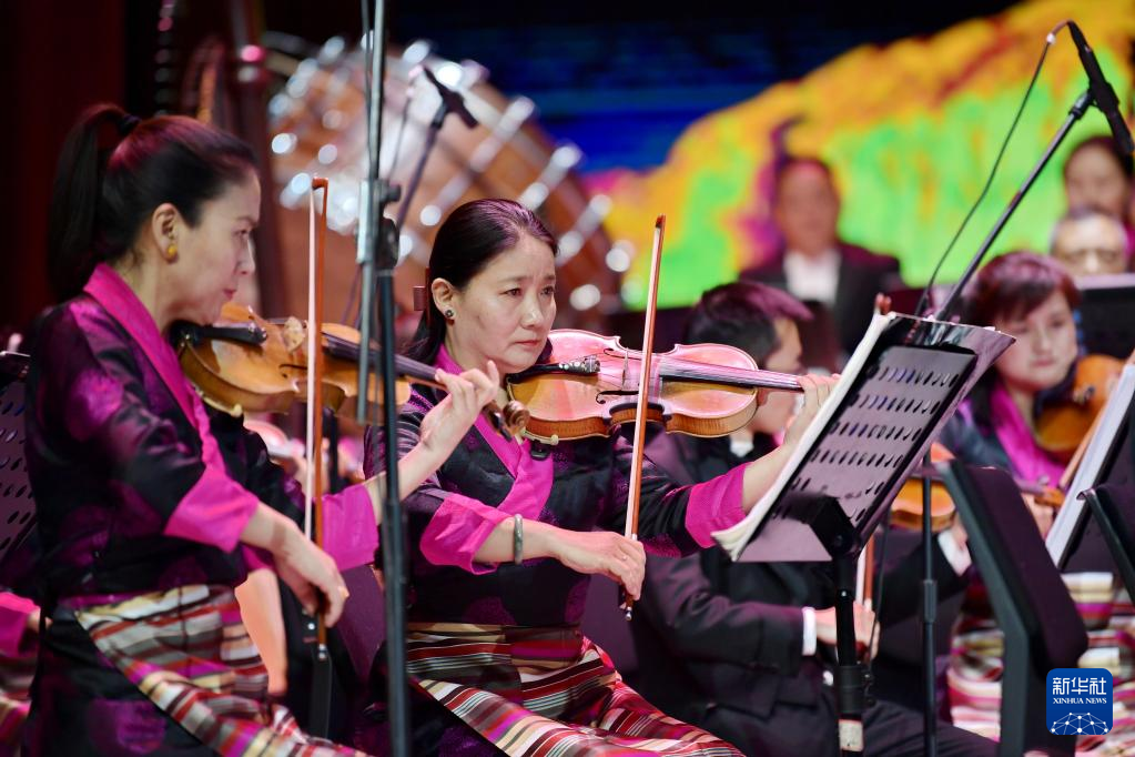 西藏愛樂樂團的藝術(shù)家在演奏交響樂《古格幻想》(4月3日攝)。新華社記者 張汝鋒 攝