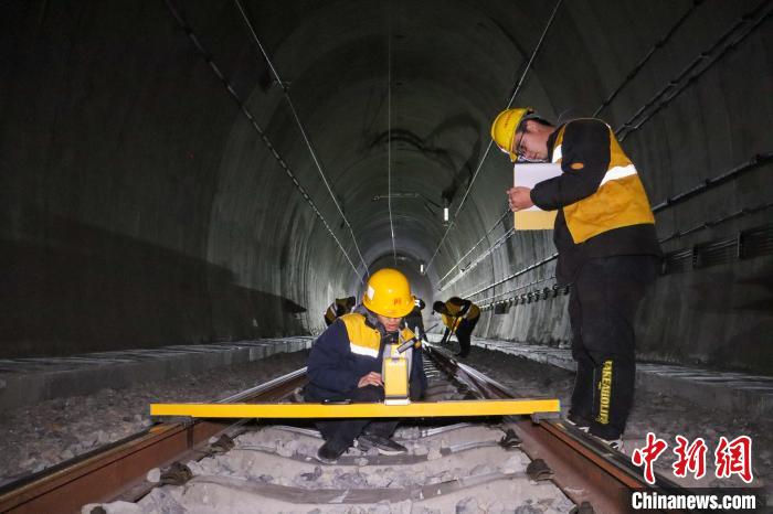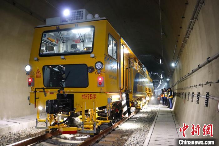 圖為鐵路大型養(yǎng)路機(jī)械搗固車(chē)在西藏拉林鐵路隧道內(nèi)。祁國(guó)慶 攝
