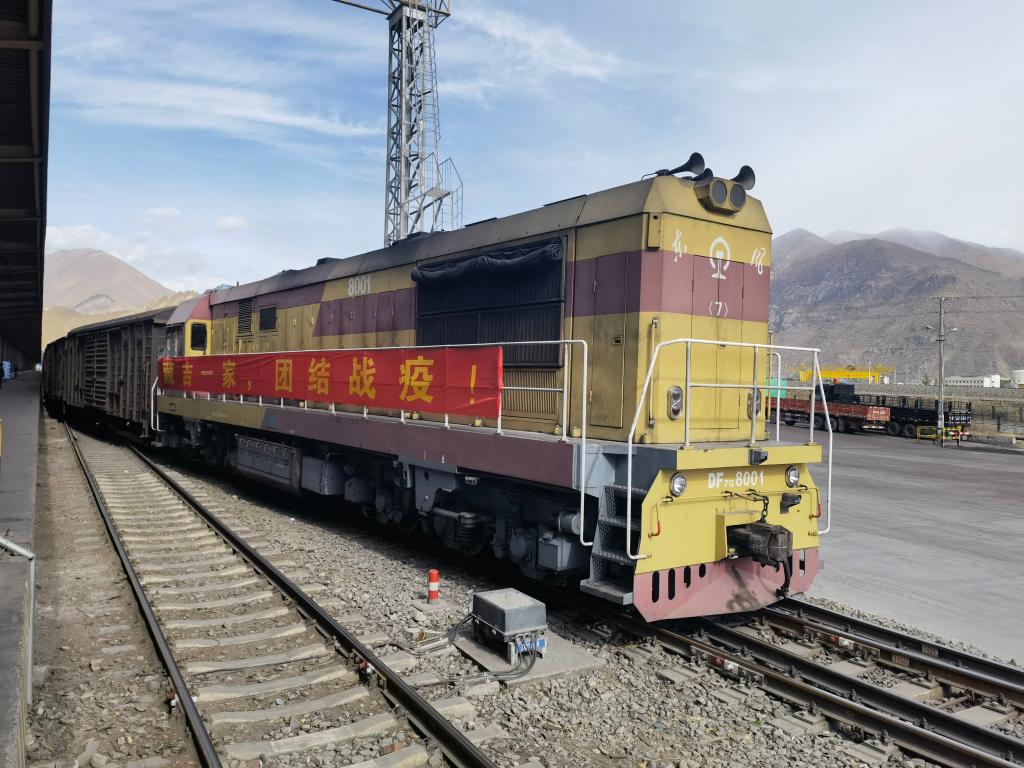 4月10日,載滿天然飲用水的列車即將從拉薩西站啟程。新華社記者 劉洪明 攝