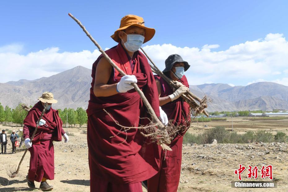4月15日,西藏大昭寺僧人在蔡公堂鄉(xiāng)植樹。當(dāng)日,西藏大昭寺在拉薩市城關(guān)區(qū)蔡公堂鄉(xiāng)啟動(dòng)拉薩南北山2800余畝山地綠化工程項(xiàng)目。 中新社記者 貢嘎來松 攝