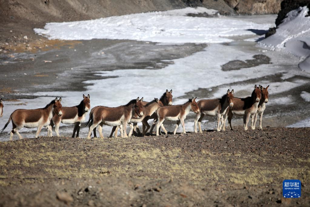 這是在西藏日土縣拍攝的一群藏野驢(4月8日攝)。新華社記者 姜帆 攝
