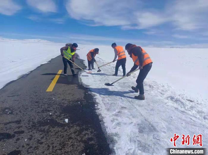 圖為西藏一線交通運輸部門組織護路員對農(nóng)村公路開展除雪保暢。西藏自治區(qū)交通運輸廳供圖