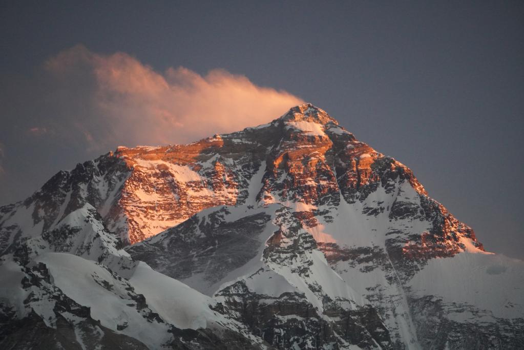 珠峰呈現(xiàn)日照金山的景象。新華社記者 田金文 攝