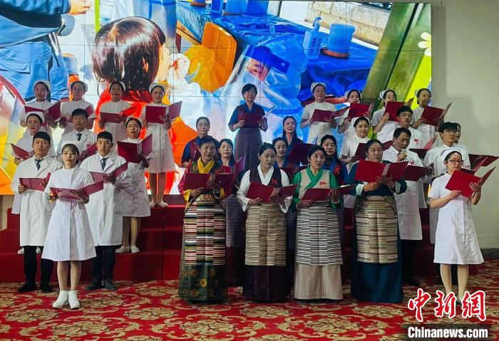 西藏自治區(qū)人民醫(yī)院老中青護(hù)士代表演繹詩朗誦《提燈女神的贊歌》?!∪轿木?攝