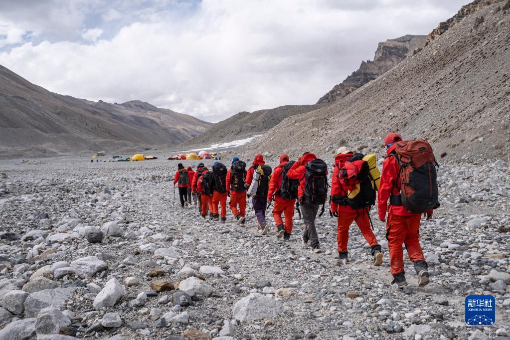 珠峰科考登頂工作小組隊(duì)員們安全返回珠峰大本營(yíng)。