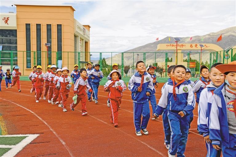 圖為山南市瓊結(jié)縣瓊結(jié)鎮(zhèn)完全小學學生在上體育課。記者 李洲 攝
