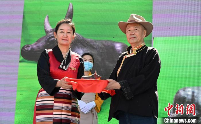 西藏牦牛博物館創(chuàng)館館長、現(xiàn)榮譽館長吳雨初向西藏牦牛博物館捐贈了玉石牦牛雕刻作品。