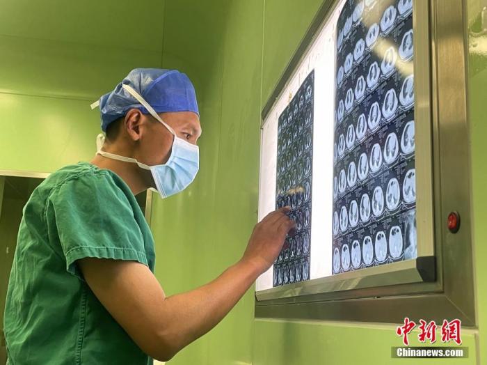 圖為5月7日,次仁云丹(左)在拉薩為患者進(jìn)行手術(shù)治療。 中新社記者 冉文娟 攝