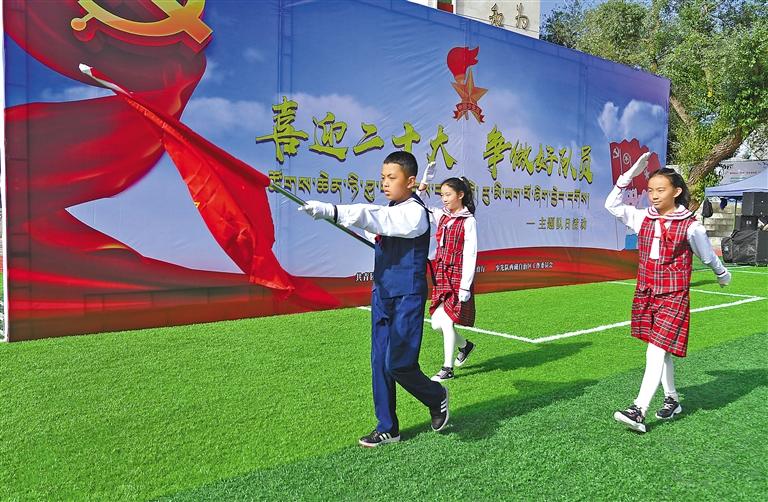 拉薩市第一小學(xué)舉行“喜迎二十大、爭做好隊員”少先隊員入隊儀式。記者 李 攝
