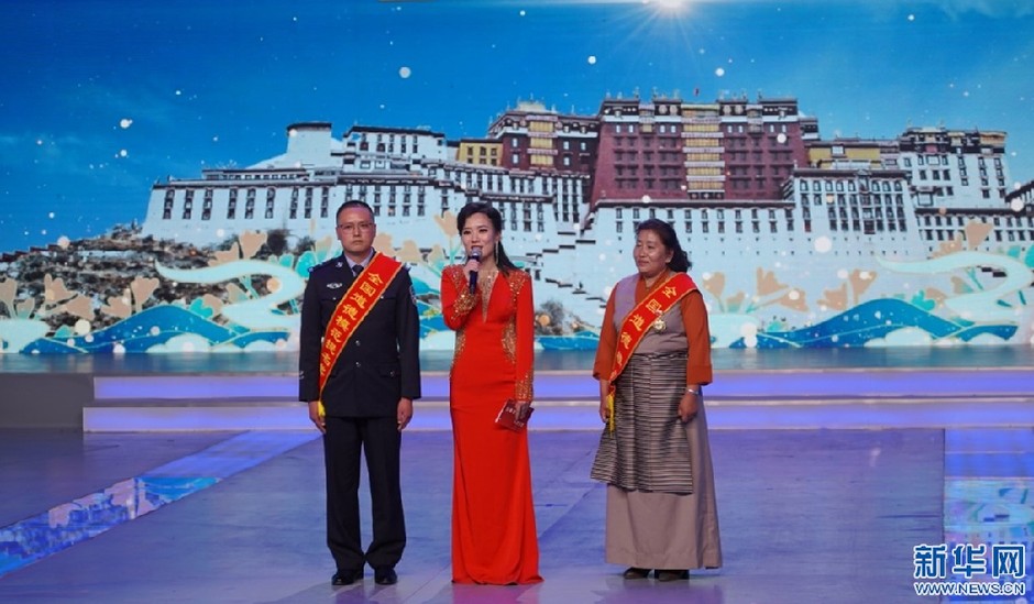 圖為晚會現(xiàn)場獲獎?wù)吆嫌埃?月31日攝)。新華網(wǎng)發(fā) 貢桑央吉(實(shí)習(xí)生)攝.