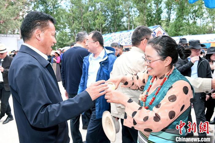 6月10日下午,西藏日喀則貢覺林卡公園內(nèi),人們載歌載舞,洋溢著節(jié)日的氛圍。為了慶祝2022年文化和自然遺產(chǎn)日,由日喀則桑珠孜區(qū)人民政府主辦,桑珠孜區(qū)文化和旅游局、桑珠孜區(qū)商務(wù)局承辦的2022第二屆“桑珠孜有禮”·非遺藝術(shù)節(jié)暨桑珠孜區(qū)特色產(chǎn)品展示展銷活動(dòng)宣告正式啟動(dòng)。