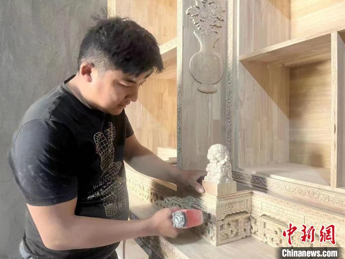 說干就干,2021年他在村里開了木材加工廠,為此,他還特地去外地學(xué)習(xí)操作方法,“藏式家具的雕花很復(fù)雜,但是我有壁畫的繪畫功底,學(xué)習(xí)起來非???。”