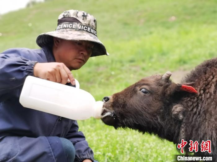 圖為給小牛犢喂奶?!?zhí)砀?攝
