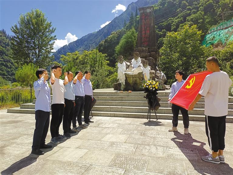 7月1日,中交二公局西藏項(xiàng)目黨支部組織黨員、預(yù)備黨員、入黨積極分子,前往波密紅樓、“川藏線上十英雄”紀(jì)念碑等地開展慶祝建黨101周年主題黨日活動,引導(dǎo)黨員干部自覺錘煉黨性,增強(qiáng)服務(wù)意識、感悟初心、傳承使命。 圖為該支部黨員在“川藏線上十英雄”紀(jì)念碑前重溫入黨誓詞。林芝采訪組 攝