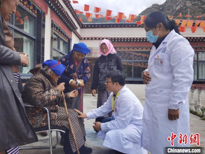 張韡為藏族民眾看病。受訪者供圖
