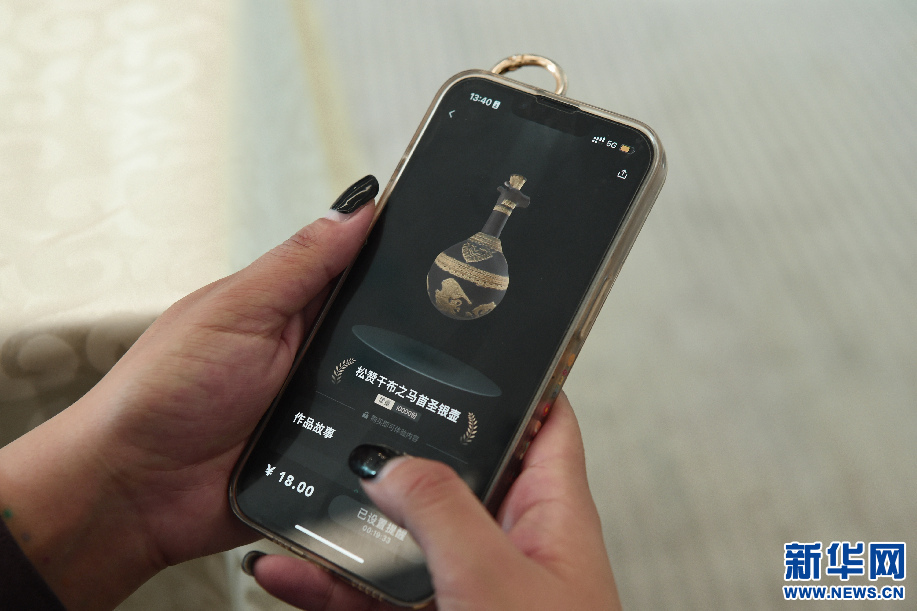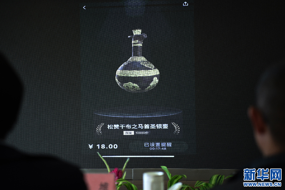 7月21日,用戶在手機端預約搶購西藏首個數(shù)字藏品《松贊干布之馬首圣銀壺》。新華網(wǎng)旦增努布 攝