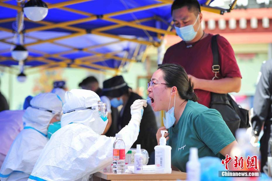 8月9日,西藏拉薩,市民在城關(guān)區(qū)八廓街道魯固社區(qū)的核酸檢測(cè)現(xiàn)場(chǎng)進(jìn)行核酸檢測(cè)。當(dāng)前,西藏拉薩市設(shè)置545個(gè)核酸檢測(cè)點(diǎn)開(kāi)展全員核酸檢測(cè)。 中新社記者 貢嘎來(lái)松 攝