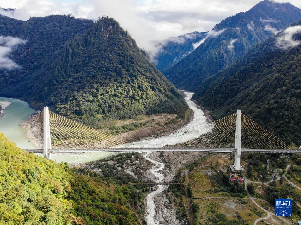 這是川藏公路通麥路段上的迫龍溝特大橋(無人機(jī)照片,2019年10月27日攝)。新華社記者 孫非 攝