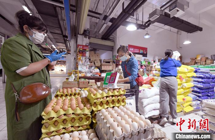 圖為拉薩市民在農(nóng)貿(mào)市場(chǎng)內(nèi)選購生活物資。李林 攝