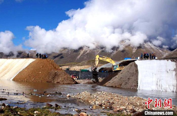 10月1日,拉薩帕古水庫實現(xiàn)導(dǎo)截流目標(biāo),開啟大壩填筑序幕?!「裆T? 攝