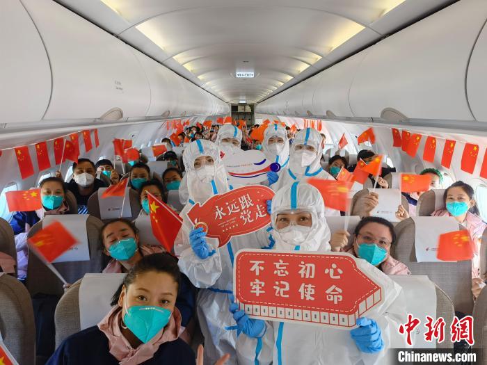 東航1天10班包機接3省市援藏醫(yī)療隊1483名“白衣戰(zhàn)士”返程 東航宣傳部供圖