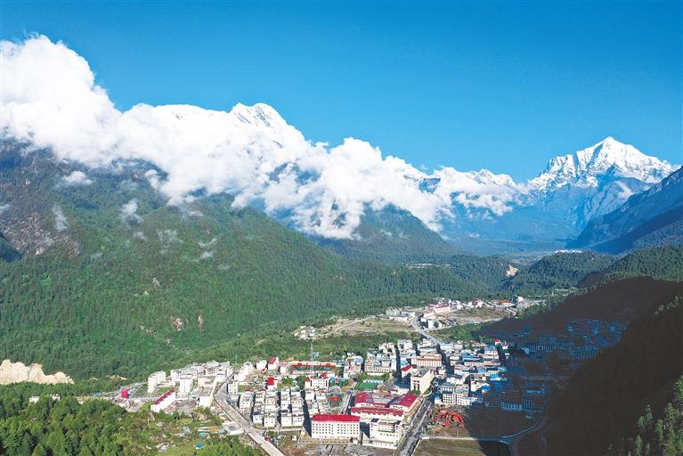 圖為2015年4月25日,尼泊爾發(fā)生里氏8.1級(jí)特大地震,位于邊境口岸的吉隆縣吉隆鎮(zhèn)受災(zāi)嚴(yán)重。圖為災(zāi)后重建的吉隆鎮(zhèn)新貌。