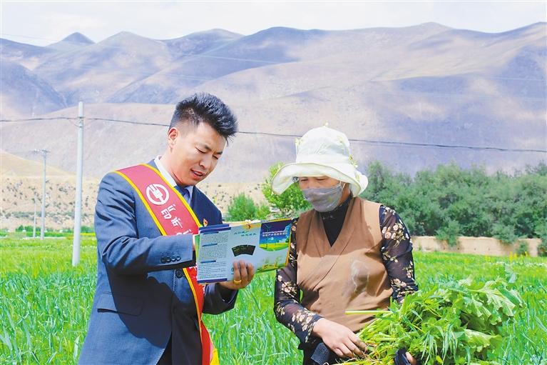 農(nóng)行拉薩分行員工走進(jìn)田間地頭為農(nóng)牧民普及金融知識(shí)。