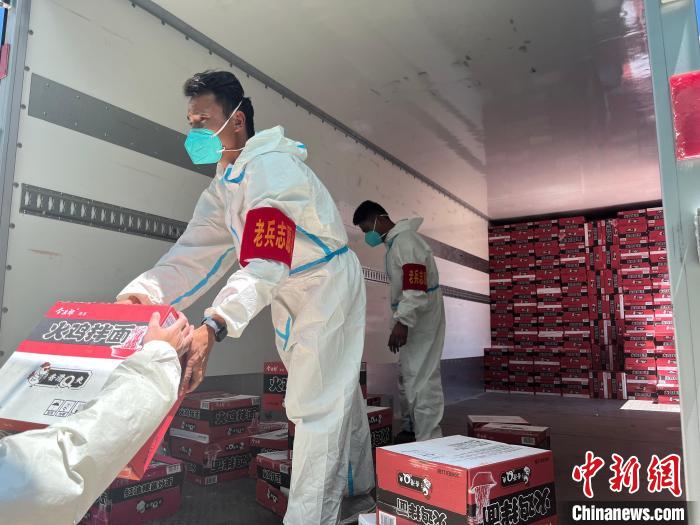 圖為正在配送物資的“老兵”志愿者?!埧藗?攝