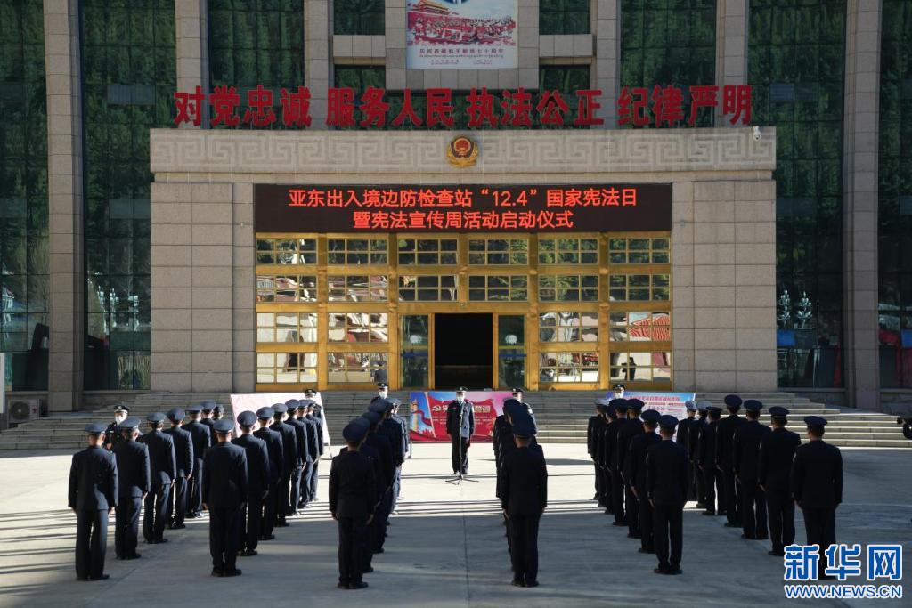 4日,西藏亞東出入境邊防檢查站舉行“12·4”國家憲法日暨憲法宣傳周活動啟動儀式。儀式上,全體民警高舉右手莊嚴宣誓:“我宣誓:忠于中華人民共和國憲法,維護憲法權(quán)威,履行法定職責(zé),忠于祖國、忠于人民,恪盡職守、廉潔奉公,接受人民監(jiān)督,為建設(shè)富強民主文明和諧美麗的社會主義現(xiàn)代化強國努力奮斗!”民警們鏗鏘有力的誓言表達了捍衛(wèi)憲法、忠誠踐行使命的堅定信心和決心。