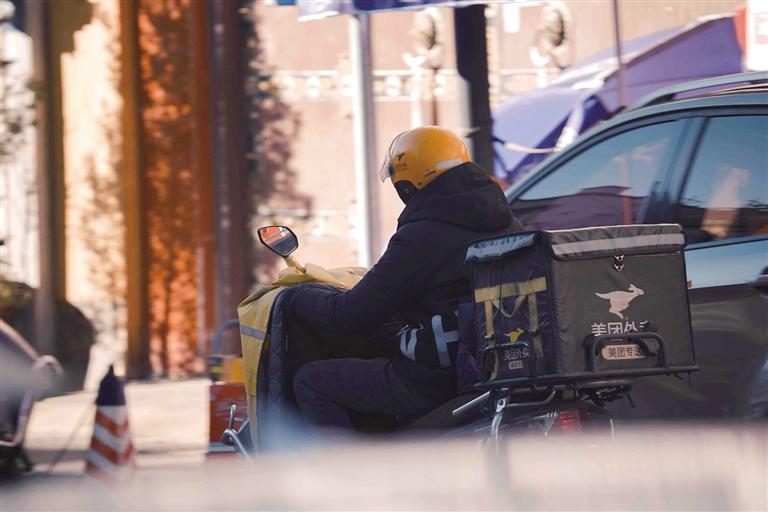 正在送餐的外賣(mài)騎手。記者 阿旺尼瑪 攝