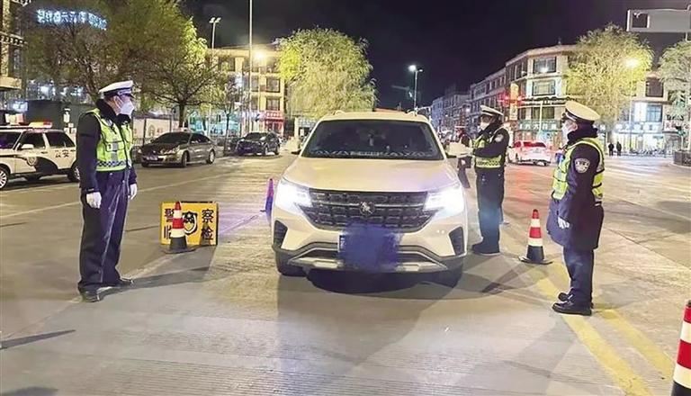 拉薩交警開展夜查酒駕統(tǒng)一行動(dòng)。圖由拉薩交警提供
