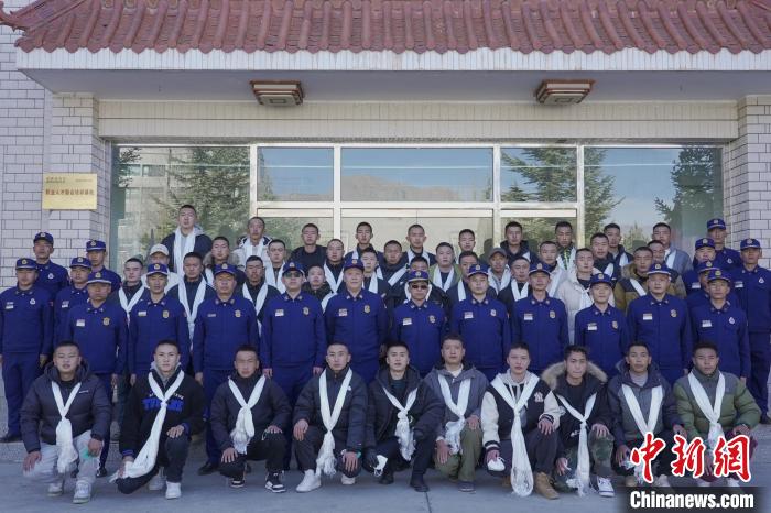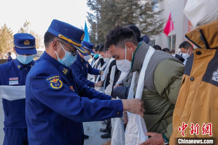 為新入營消防員獻(xiàn)上迎接哈達(dá)。 侯杰 攝
