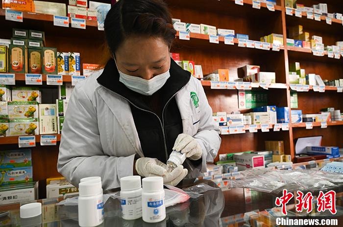 圖為西藏拉薩一藥店內(nèi),銷(xiāo)售員在拆零分裝藥品。 中新社記者 趙朗 攝