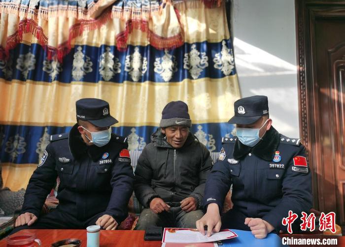 圖為普瑪江塘邊境派出所民警開展民眾走訪工作?!÷迳Gz