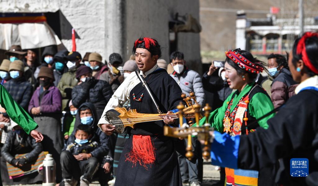 西藏日喀則市芒普鄉(xiāng)普村文藝演出隊在表演(1月21日攝)。新華社記者 晉美多吉 攝