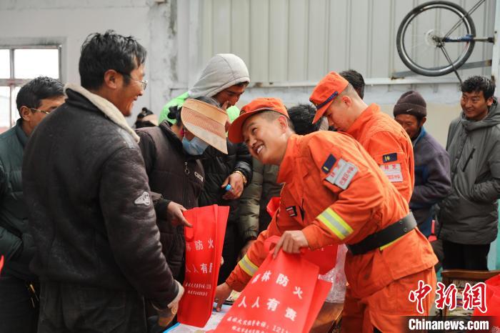 為民眾分發(fā)防火宣傳小禮品。西繞拉翁 攝