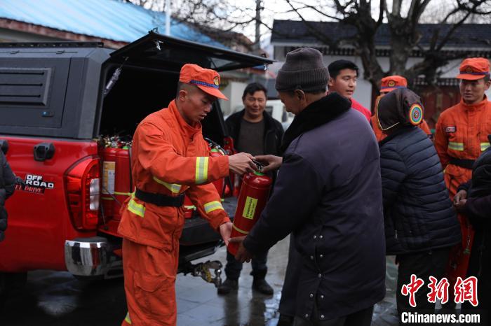 該中隊(duì)為每家每戶配發(fā)干粉滅火器。西繞拉翁 攝