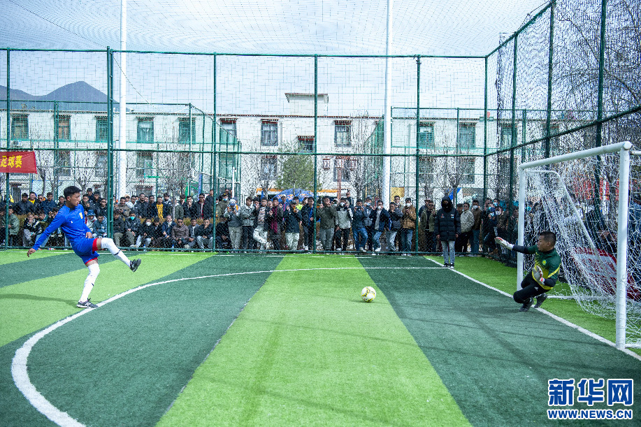 2月14日,巔炯邁瓦隊球員在點球大戰(zhàn)中射門。新華網(wǎng) 旦增努布 攝