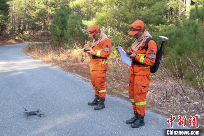 在林區(qū)使用無人機進行空中巡護。黃豪 攝