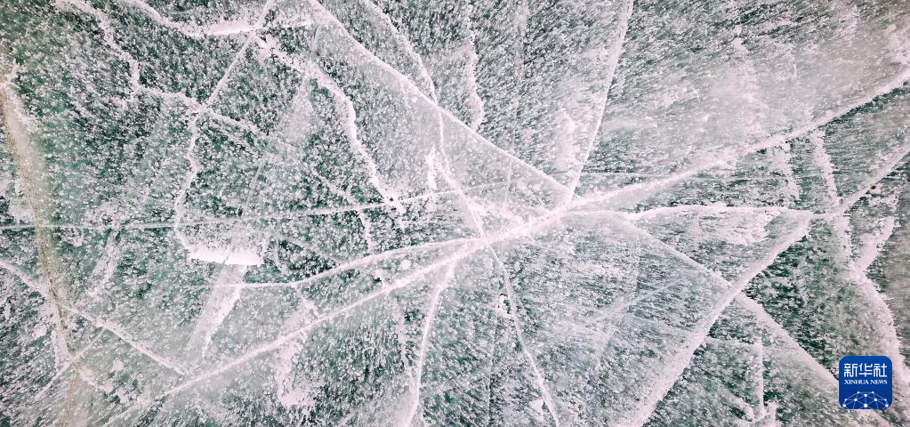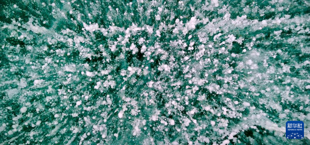這是瓊穆崗嘎冰川冰湖湖面的“氣泡冰”(手機(jī)照片,2月20日攝)。新華社記者 沈虹冰 攝