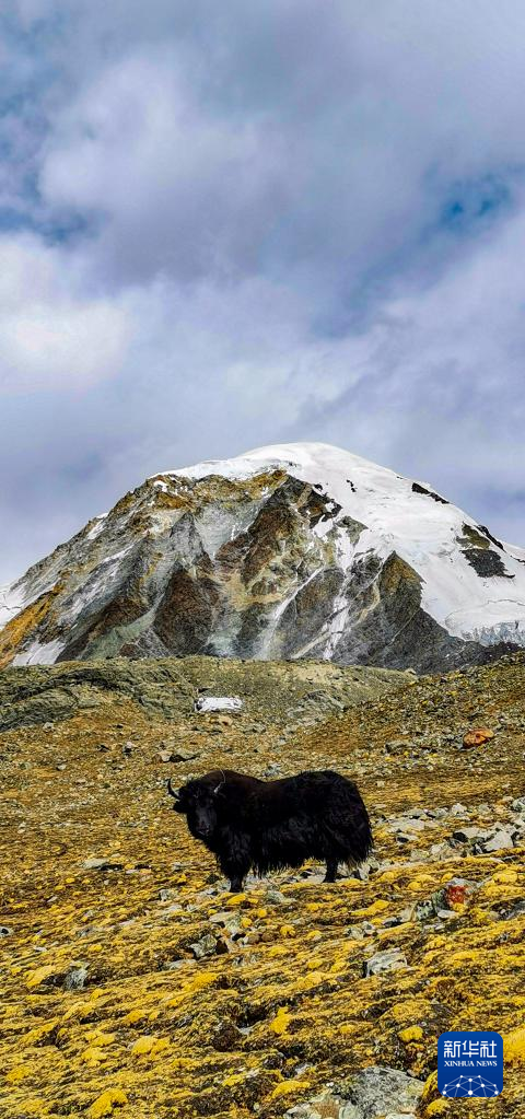 這是瓊穆崗嘎峰下的一頭牦牛(手機(jī)照片,2月20日攝)。新華社記者 沈虹冰 攝