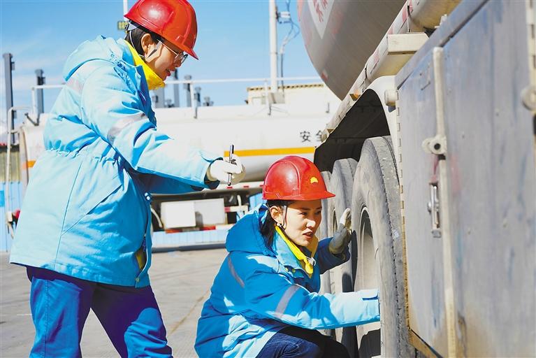 中國石油運輸西藏分公司女員工在養(yǎng)護車輛。次仁平措 攝