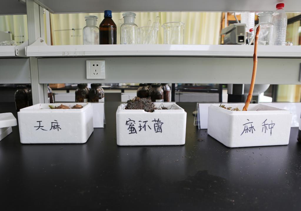 這是天麻種植實(shí)驗(yàn)室內(nèi)培養(yǎng)的菌類及麻種(3月24日攝)。新華社記者邵澤東 攝