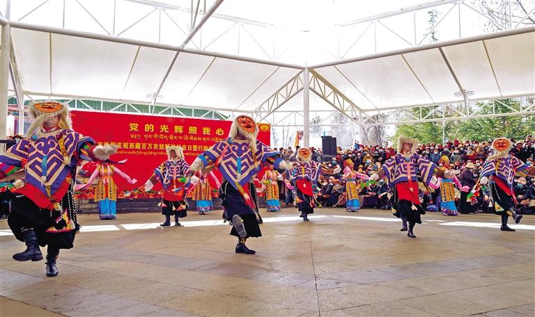 連日來,拉薩市城關(guān)區(qū)、堆龍德慶區(qū),山南市瓊結(jié)縣、那曲市班戈縣分別舉行紀(jì)念西藏百萬農(nóng)奴解放64周年文藝表演。優(yōu)美的歌聲、熱情的舞步,不時贏得在場觀眾的陣陣喝彩??赐暄莩?,群眾益西旦增激動地說:“64年來,西藏發(fā)生了翻天覆地的變化,我們的生活越來越好,大家從內(nèi)心深處感謝黨和國家?!?/p>