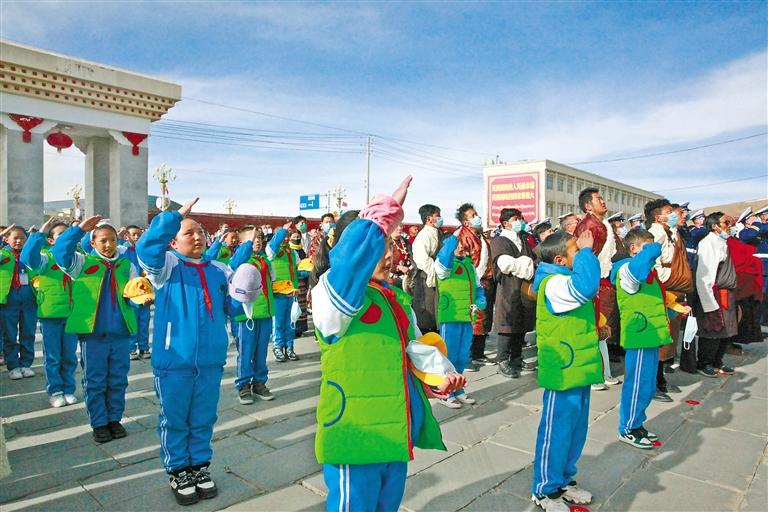 28日,西藏大學(xué)、拉薩市教育局組織學(xué)生開展“升國旗、唱國歌”活動,并觀看《復(fù)興之路》和《人格的力量——中國共產(chǎn)黨人的家國情懷》兩個直播課堂,革命先烈為實現(xiàn)國家解放和民族復(fù)興前仆后繼、視死如歸的英雄事跡深深打動了每一名學(xué)生。西藏大學(xué)學(xué)生向秋雨說:“我們要以史為鑒,開創(chuàng)未來,扎實學(xué)好專業(yè)知識,維護(hù)祖國統(tǒng)一,鑄牢中華民族共同體意識,讓青春之花在祖國最需要的地方絢麗綻放?!?/p>