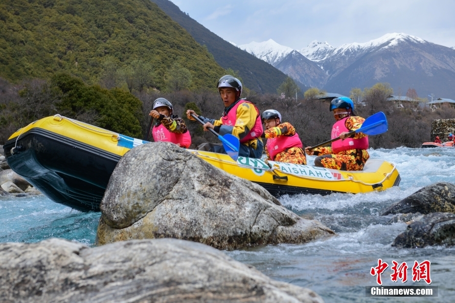 4月16日,2023年阿依舍·中國漂流聯(lián)賽(西藏工布江達縣站)的比賽在西藏林芝落下帷幕。據(jù)悉,此次比賽共設靜水雙人艇競速賽、靜水漂流筏排位賽、激流漂流筏繞標賽、激流漂流筏追逐賽4個項目。圖為激流漂流筏追逐賽比賽現(xiàn)場。