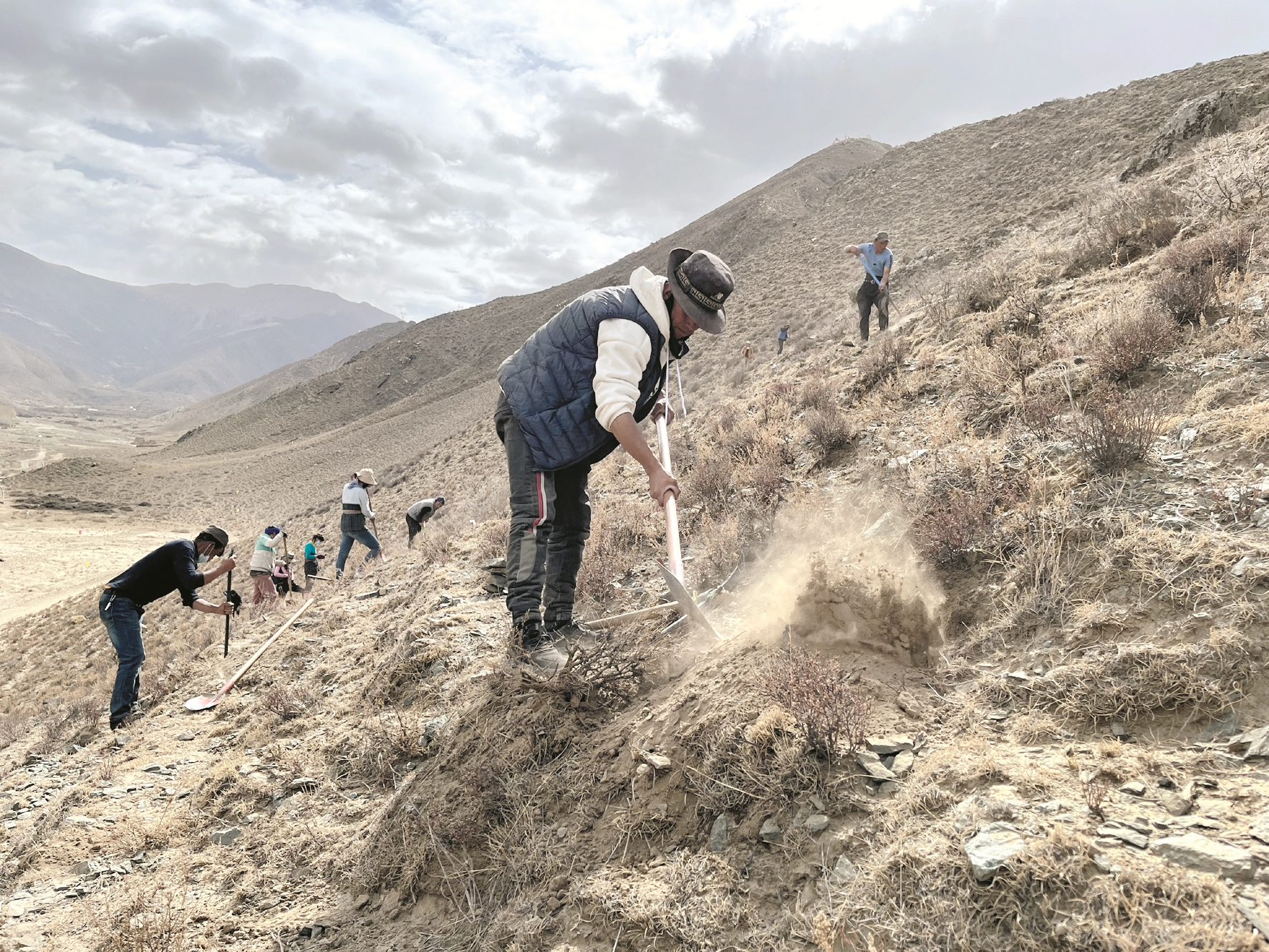 圖為村民們正在挖樹(shù)坑。拉薩融媒記者 莫瑞英攝