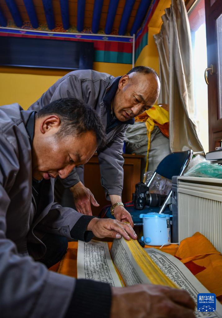 久米次成取出古籍,準備進行普查登記(4月19日攝)。新華社記者 晉美多吉 攝