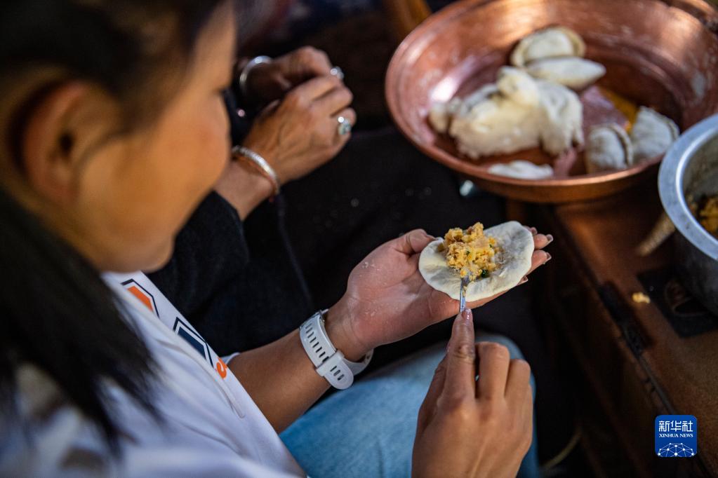 在位于西藏林芝市工布江達縣仲莎鄉(xiāng)的家中,玉珍拉姆在做土豆包子(4月24日攝)。新華社記者 孫非 攝